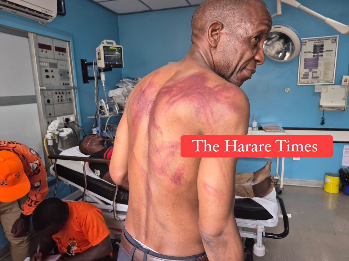 Madhuku, who is currently receiving treatment at an undisclosed hospital in the capital, removed his shirt to show journalists a body scarred by blows from baton sticks.